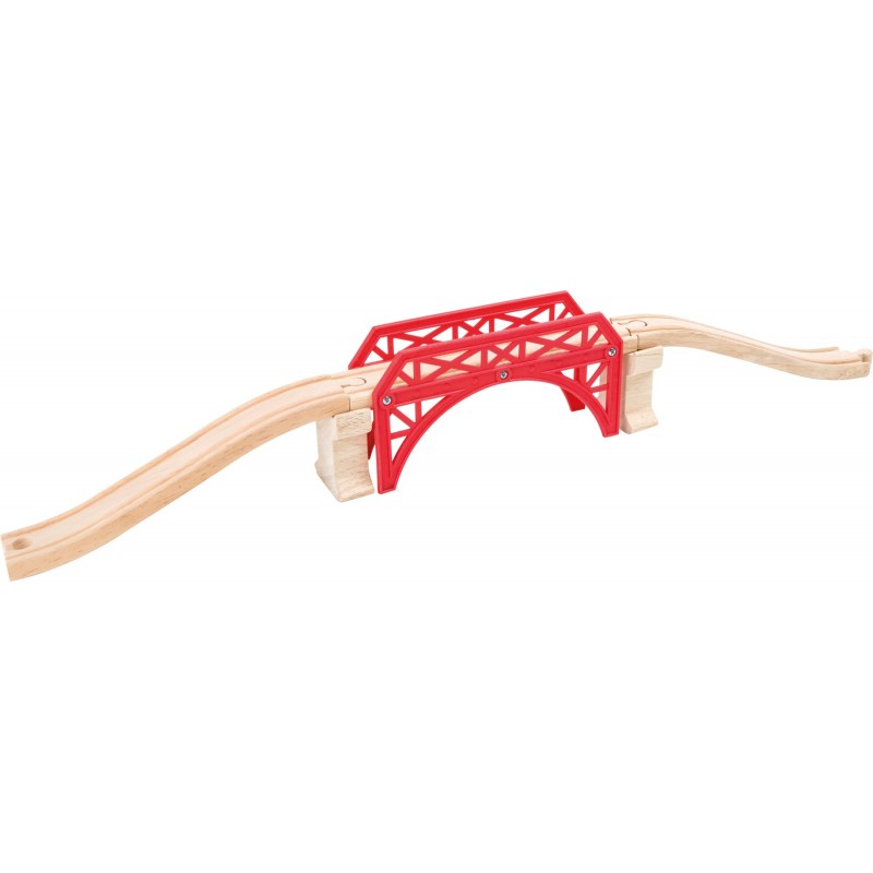 Con este puente para trenes, el paisaje ferroviario es aún más bonito. El puente está hecho de plástico y es muy resistente. Por supuesto, puede combinarse con todos los trenes de madera del mercado.