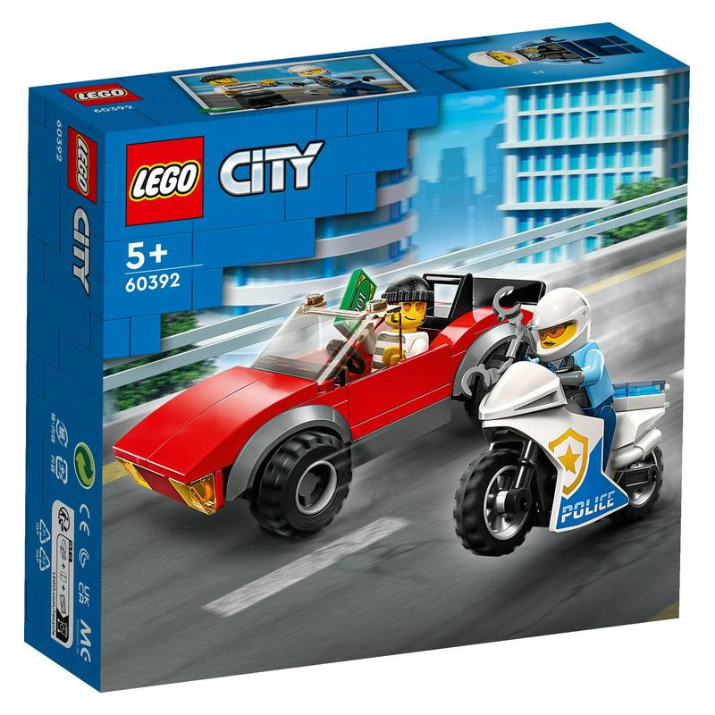 Moto de policía y coche a la fuga. LEGO 60392