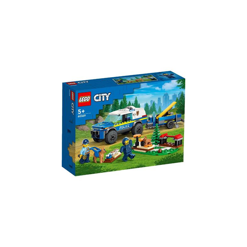 Este set contiene, un todoterreno canino, un remolque, obstáculos de entrenamiento (balacín, valla y setas de equilibrio),2 agentes de polcía, un perro y un cachorro.