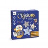 Este pack educativo contiene un libro ilustrado con 4 cuentos clásicos, 4 discos con 32 diapositivas para proyectar sobre pared, y una guía didáctica con ideas y propuestas para representar y jugar con los cuentos.