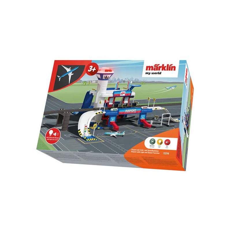 Airport. The Airport Building offers many different possibilities for play and has a battery-operated light and sound function. Different variations for connection to the track are possible.
