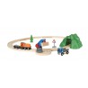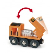 All aboard! Build your first BRIO World with this new 33878 Lift and Load Starter Set. The layout is packed with machine toys – grab crane, truck, a pop-up hood engine and wagon with load – even a warning sign, spruce and a small mountain to thunder through! Lift the cargo off the truck toy with the crane, turn and load onto the train. Works great with all products within BRIO World.