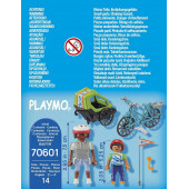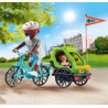 The kit contains 1 bike, 1 trailer, 2 figures, and 10 accessories.