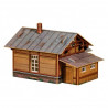Maqueta de cartón con relieve para montar una caseta de guardavías con fachada de madera. De fácil montaje, no es necesario pegamento puesto que las piezas se van ensamblando unas a otras.