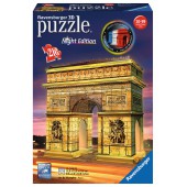 Arco del Triunfo, noche. Gracias a las diferentes piezas de puzzle abombadas, plegadas o lisas podrás construir impresionantes edificios. La precisión de estas piezas de plástico te permitiran crear una construcción estable sin necesidad de pegamento. Las piezas accesorias le daran a tu edificio un toque final.