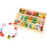 Perlas e madera. Este set creativo ofrece una amplia gama de utensilios para ensartar. Las bandas incluidas se utilizan para ensartar y decorar el cuello y los brazos. Cada uno puede diseñar una pieza de joyería de su gusto.
