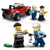 Este set contiene una moto policial y un deportivo con el que el ladrón huye de su gran robo, también incluye dos mini figuras de policía y ladrón.