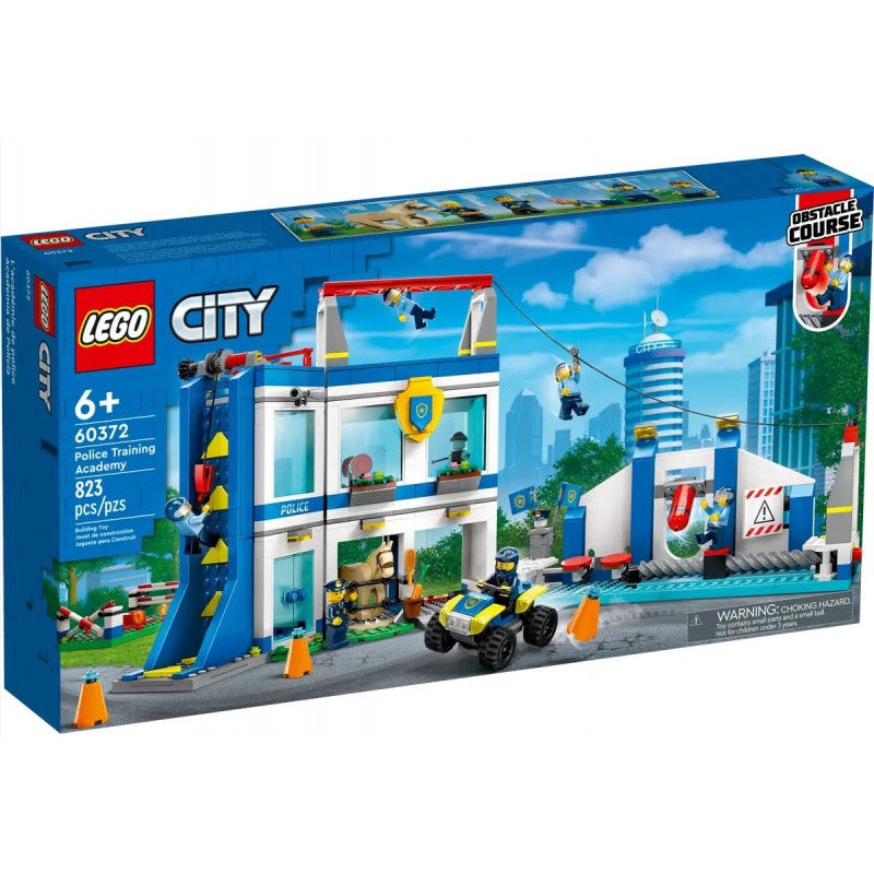 El set LEGO City Academia de Policía (60372) se compone de una comisaría de policía modular con varias salas y de un circuito de obstáculos al aire libre con divertidas instalaciones, como un muro de escalada, un pasamanos y una tirolina de juguete. Incluye también un quad con dirección, 6 minifiguras y una figura de un caballo.