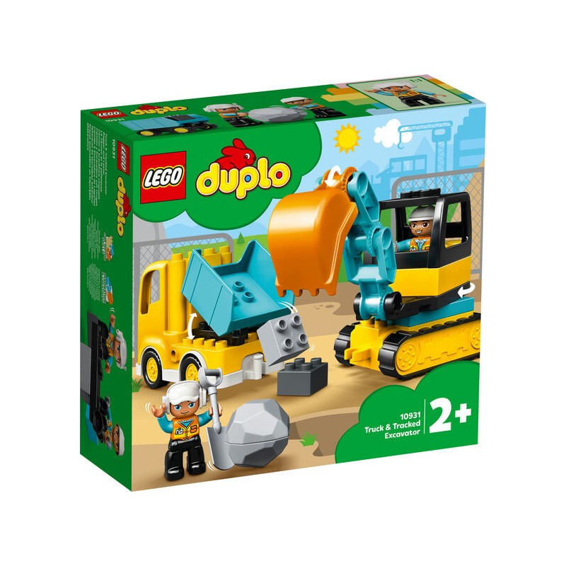 Incluye dos figuras de trabajadores de la construcción, un camión para empujar con función de volteo, una excavadora giratoria para empujar con pala ajustable y una enorme roca que los peques podrán abrir por la mitad.
