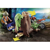 Este kit contiene dos figuras, una moto, un coche todoterreno de la policía, un árbol hueco, monedas de oro, pistolas y muchos otros extras.