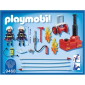 Bomberos con bomba de agua.El conjunto incluye dos bomberos, bomba de agua, fuego, herramientas y otros accesorios.