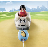 Este set contiene dos figuras Playmobil, un perro y una correa para poder llevar al perro arrastrando.