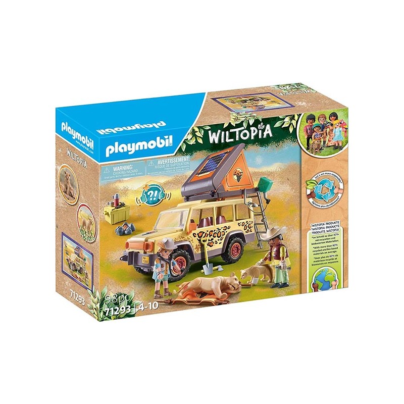 Con el Vehículo todoterreno que funciona con energía solar, incluso las misiones en la sabana no son un problema para el veterinario Jamie Palmer y puede ayudar rápidamente al león herido. Frotando suavemente, la herida del depredador desaparece. El techo es desmontable con tienda de campaña hay espacio suficiente para que dos figuras pasen la noche.